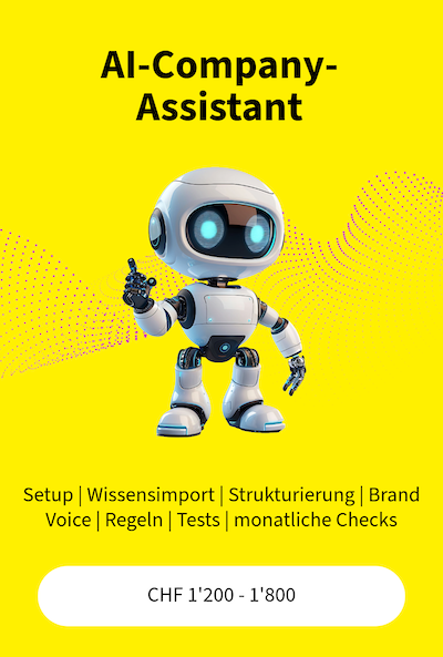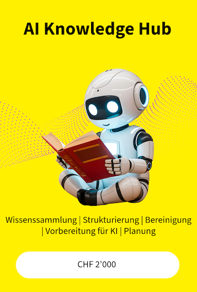 Unsere neuen KI-Lösungen helfen KMU, Wissen zugänglich zu machen, Kundenfragen schneller zu beantworten und Inhalte effizient zu erstellen. Einfach einsetzbar, flexibel kombinierbar und passgenau für Ihren Alltag.